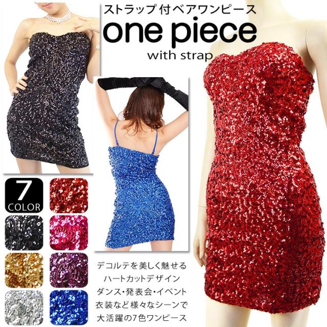 ハートカットのバストラインが美しいスパンコールベアミニドレス☆