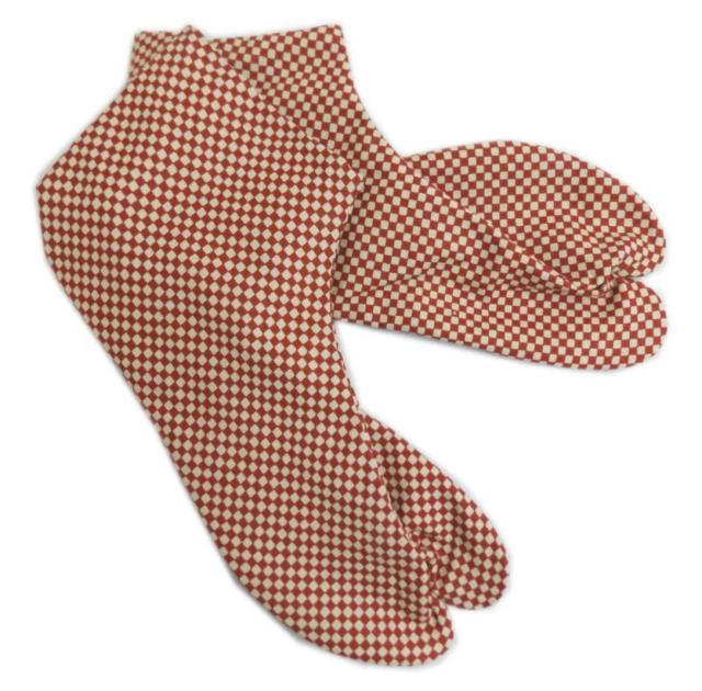 足袋 柄 メンズ 男性 4枚こはぜ 市松赤きなり 27.5cm 日本製 カジュアル 着物 成人式 卒業式 大きいサイズ 男物 紳士用 27cm LL 3L