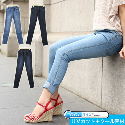 ひんやり素材で気持ちがいいデニムレギンスはクール素材というだけじゃなく、伸縮性もあり穿き易い!さらにUVまでカットしてくれる嬉しいアイテムなのですよ♪