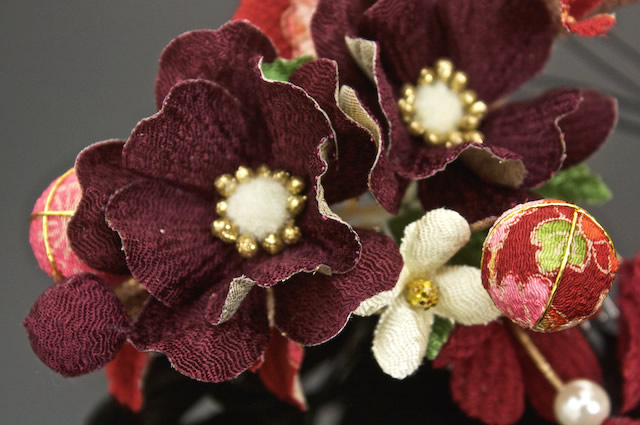 縮緬地を贅沢に使用した髪飾り2点セット。