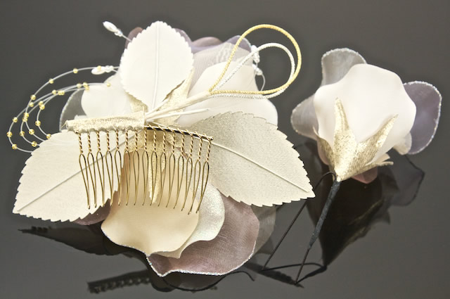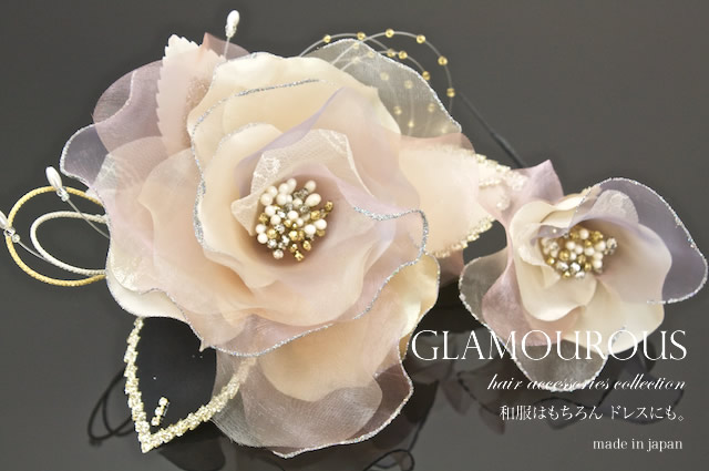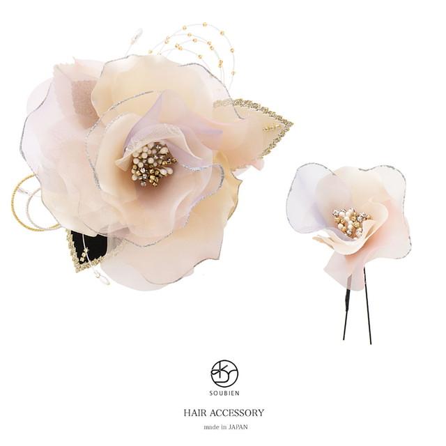 お花髪飾りの大小2つがセットになったヘアアクセセットです。