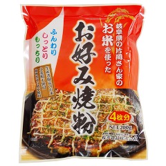 ●生産者限定のお米を主原料に膨張剤は重曹を使用したお好み焼粉です。