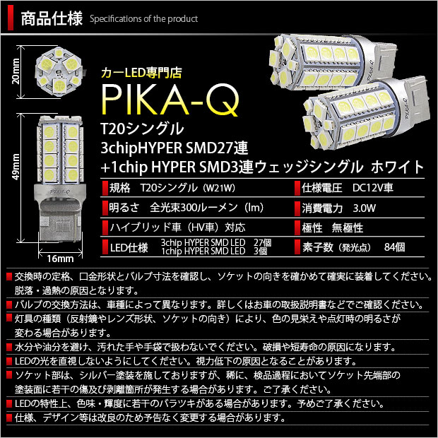 | バックランプ用T20シングルウェッジLEDバルブ。 HYPER SMD LEDを30個搭載。計84個もの発光点から放たれる強烈なホワイト照射光が魅力です。この煌めきがワンランク上のLEDメイクへと誘います! | ||||
