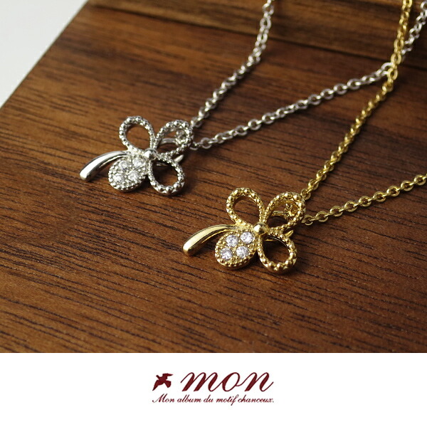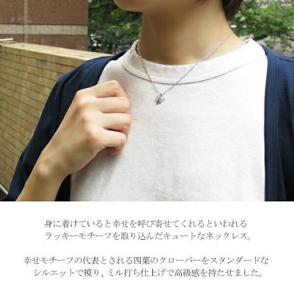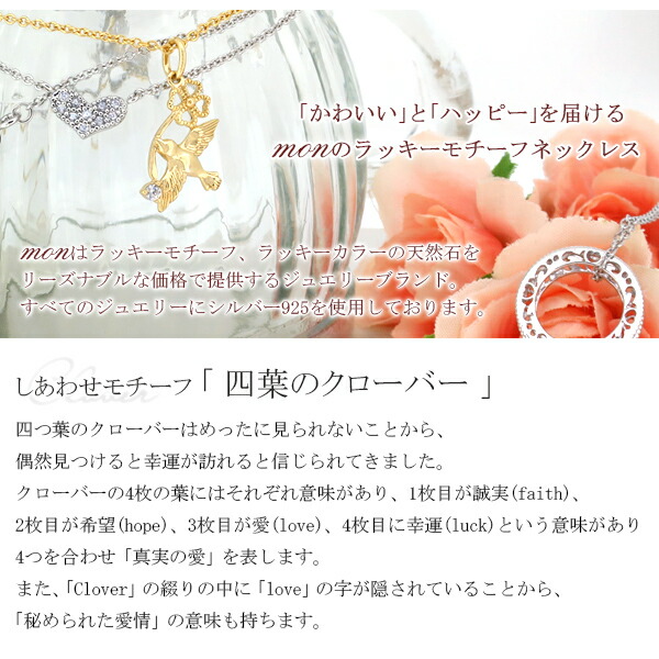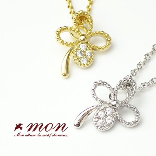 【mon】 選べる2カラー 透かし 四つ葉のクローバー シルバーネックレス 送料無料