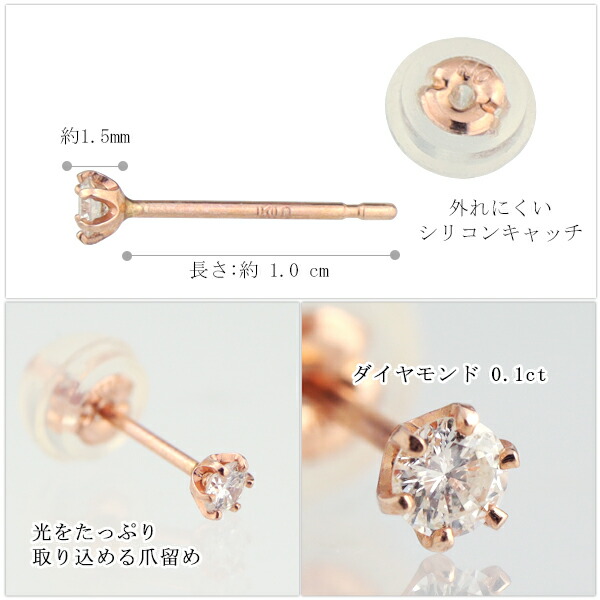 me. luxe 選べる2カラー K10 天然石 一粒 ダイヤモンド ピアス 2P 10金 10k k10 ゴールド PG WG 女性用 プレゼント ギフトBOX メンズ 男性用