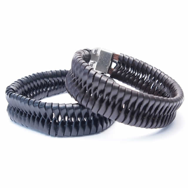 全2色★牛革レザーブレスレット ロッキンブライデッド/本革本皮革ヒモ/バングル/メンズ男女兼用/サロンアメカジ/ブラックoff