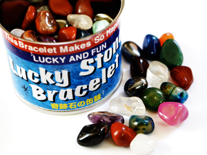 約8種類のタンブルストーンと、ラッキーストーンブレスレット1つが、
