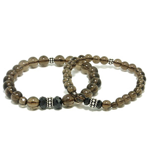 クリアブラウンのスモーキークォーツでシックに仕上げたペアブレスレットです。