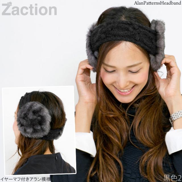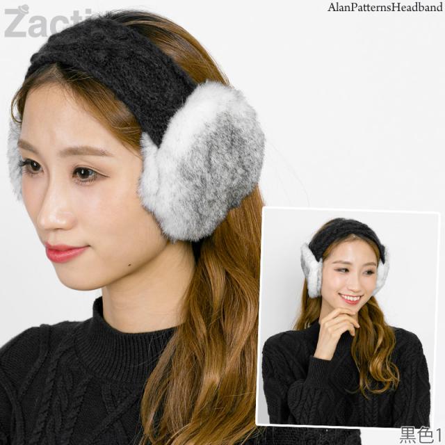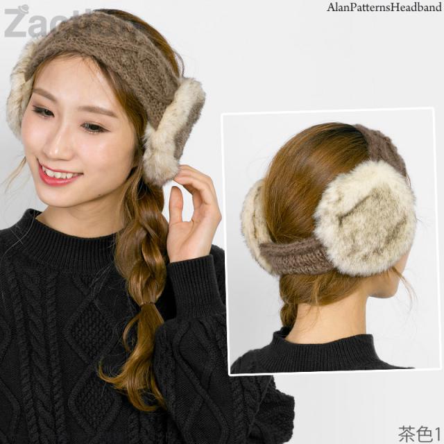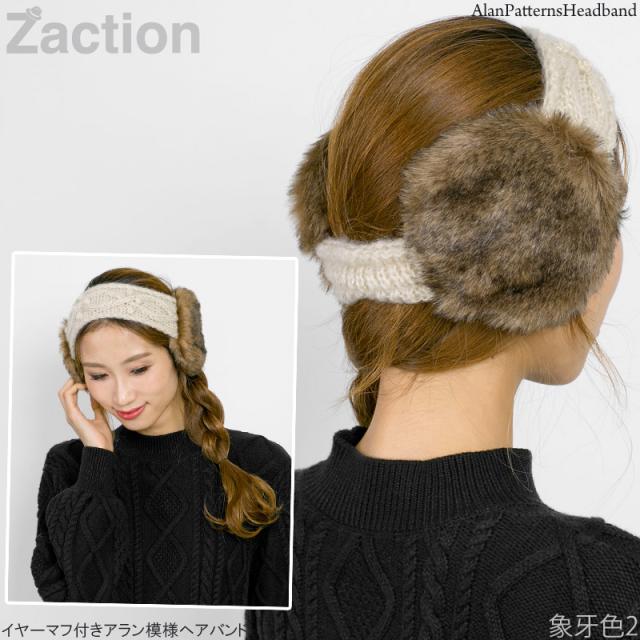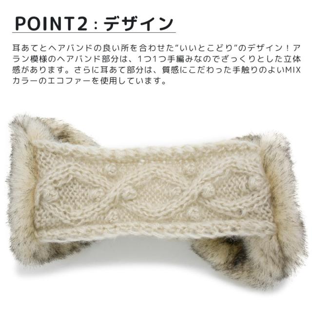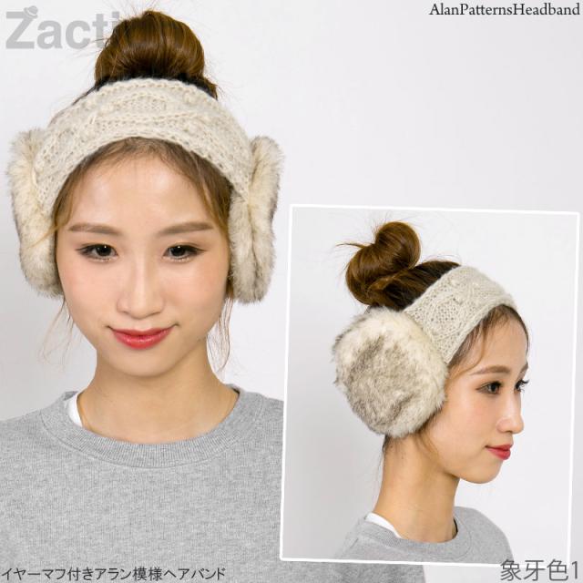 イヤーマフ レディース [メール便可] 耳あて ヘアバンド 防寒 ターバン 手編み / イヤーマフ付きアラン模様ヘアバンド