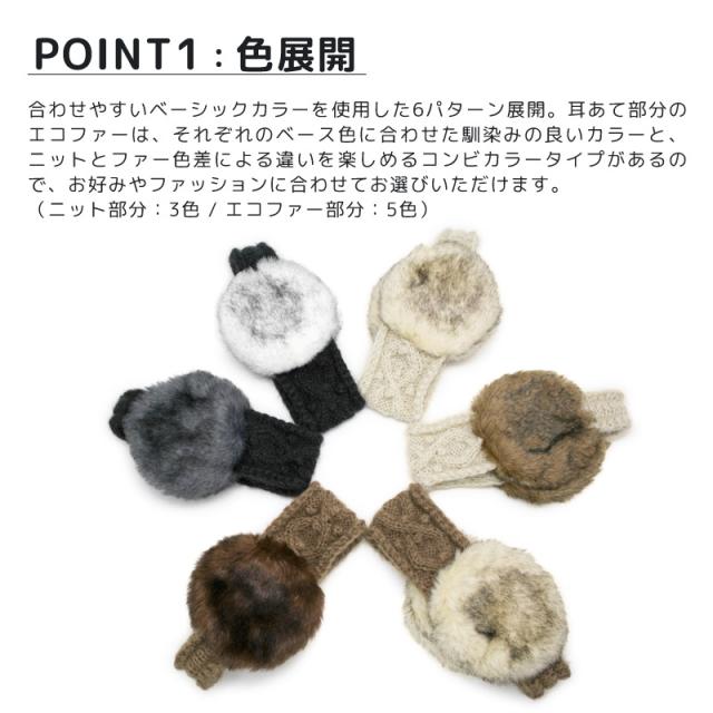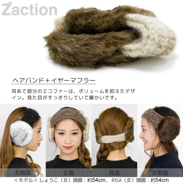 ふわふわのエコファーを耳あて部分に使用した手編みのニットヘアバンドがZactionオリジナルで完成しました。着け方はとても簡単で、ヘアバンドのように頭にはめるだけで自然と耳あて部分は耳にかかる位置にきてくれます。普通のイヤーマフラーほどのボリュームがないので、ナチュラルにコーデを楽しめます。アレンジの効いた、ちょっと人とは違うお洒落を楽しんでみてはいかがでしょうか?また、後頭部に当たる部分にはゴムが入っていますので、着け心地も程よいフィット感があり快適です。