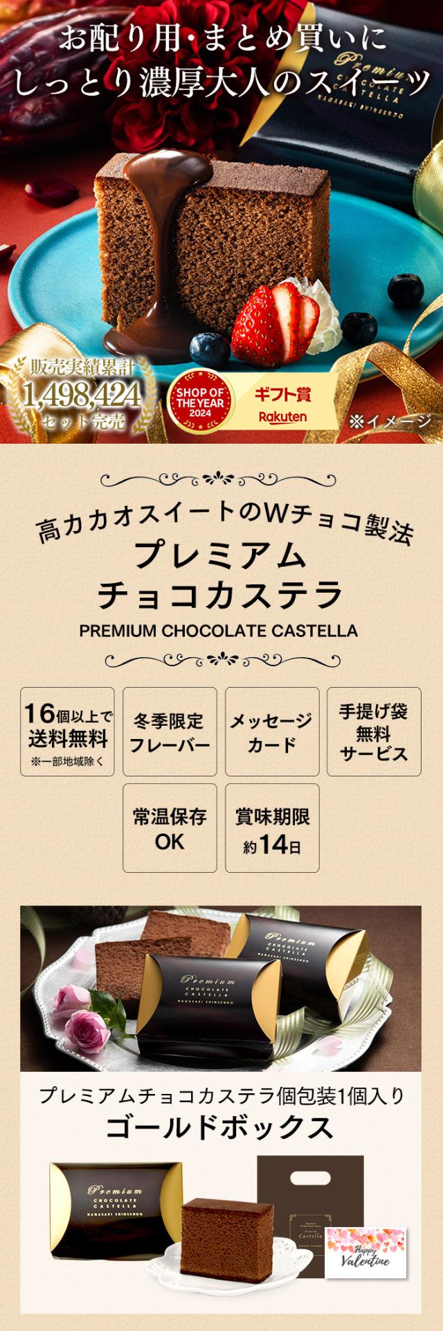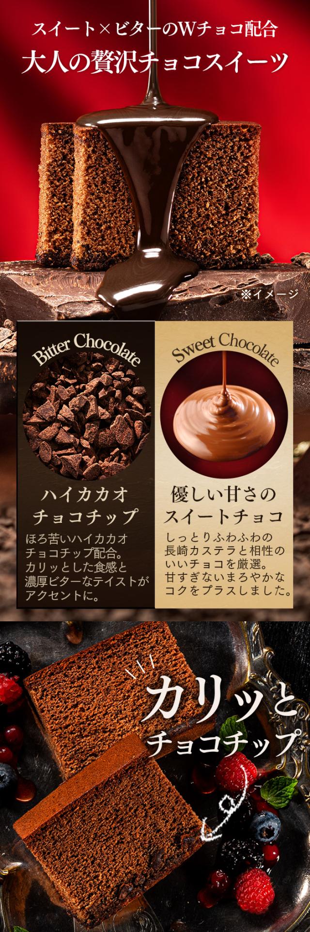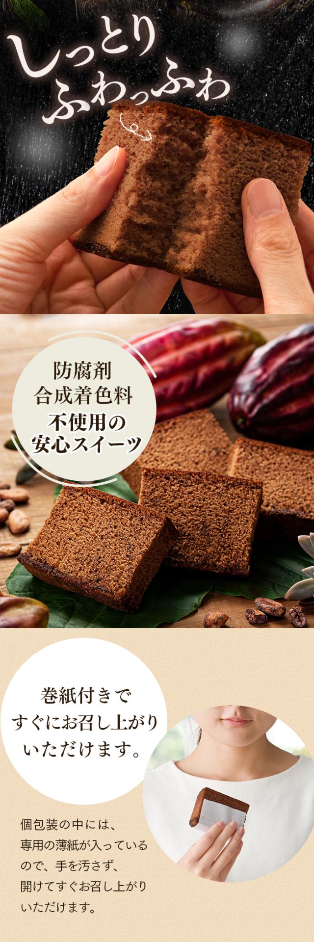 鶏卵(国産)、砂糖、小麦粉、水飴、ザラメ糖、植物油脂、ココアパウダー、カカオマス/乳化剤、香料、酸化防止剤(V.E、V.C)、(一部に大豆を含む)
