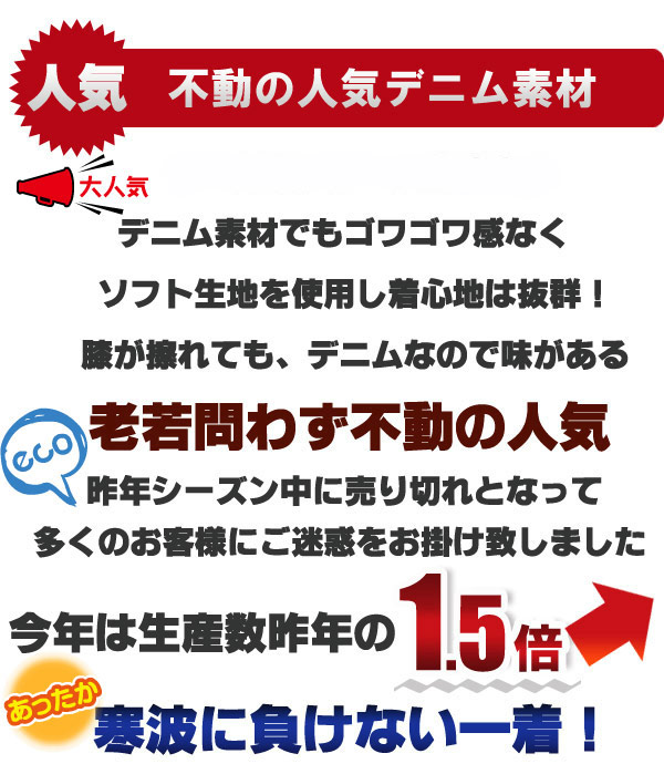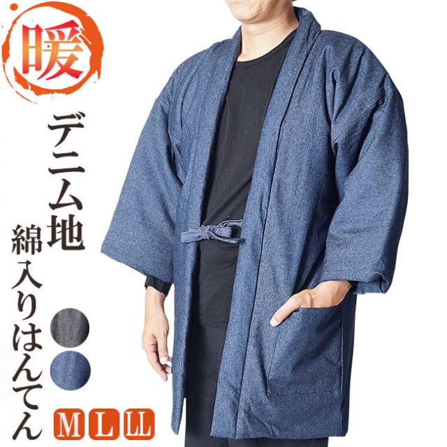 デニム地 綿入り半纏 はんてん 半天 M/L/LL