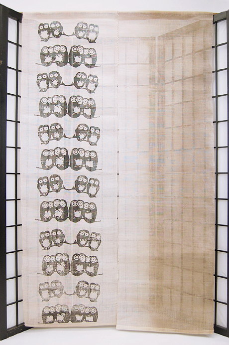 暖簾-麻100% ふくろう茶ぼかし n-67