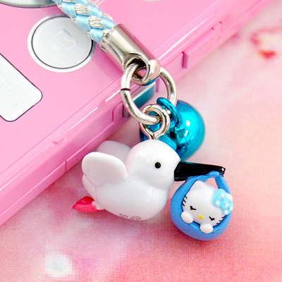 □ ハローキティ こうのとりキティ 根付けストラップ ブルー(黒くちばし) 【メール便対応商品】