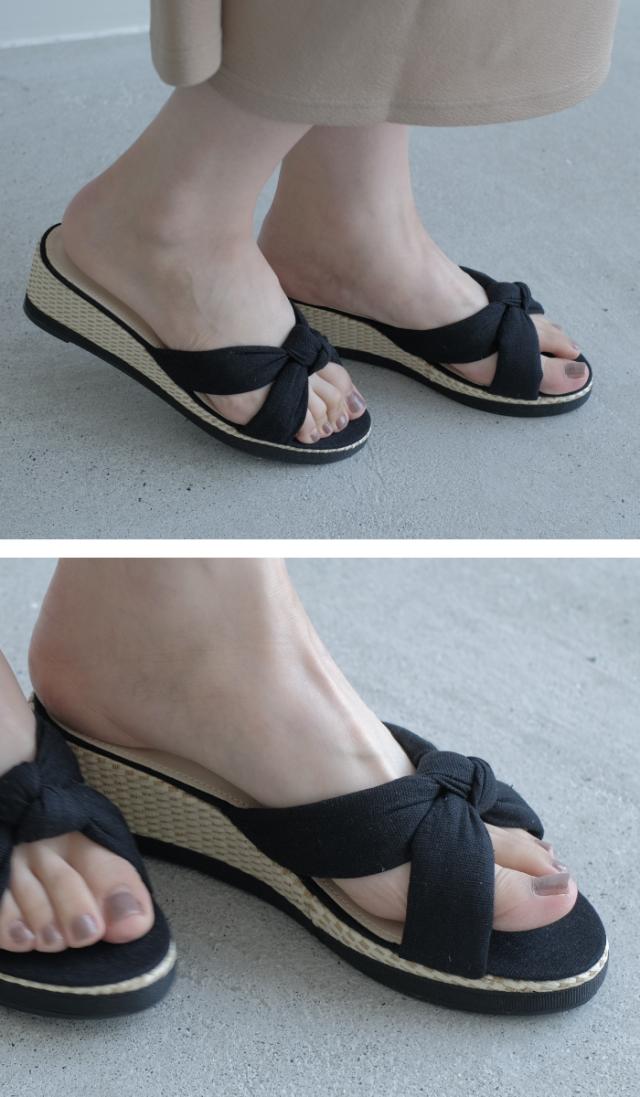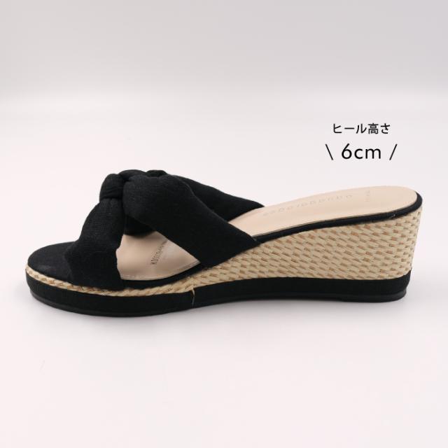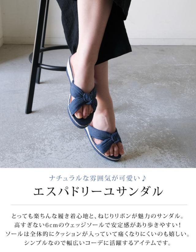 ナチュラルな雰囲気が可愛い♪ エスパドリーユサンダルとっても楽ちんな履き着心地と、ねじりリボンが魅力のサンダル。 高すぎない6cmのウェッジソールで安定感があり歩きやすい! ソールは全体的にクッションが入っていて痛くなりにくいのも嬉しい。 シンプルなので幅広いコーデに活躍するアイテムです。