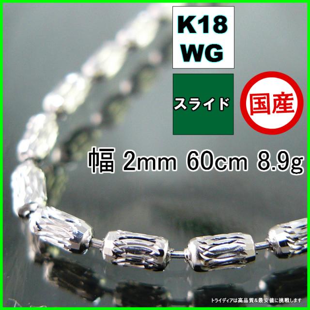 シリン ネックレス 18金 18k ホワイトゴールド WG ネックレスチェーン k18 メンズ レディース プレゼント 幅2mm 60cm ロングネックレス 8.9g スライド