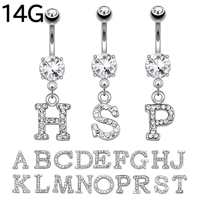 HSP 全18種イニシャル ジュエル バナナバーベル14G【へそピアスヘソピアス/アルファベットABCDEFGHIJKLMNOPRST♪】