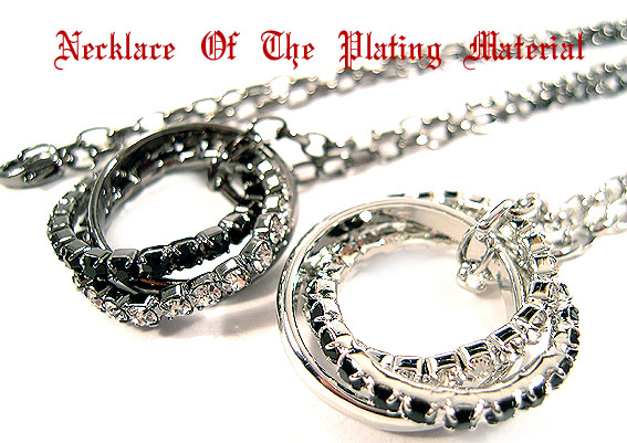 ブラック/ホワイト/ラインストーン/スリーリング/トップ&チェーン/ペンダントネックレス/4-7687