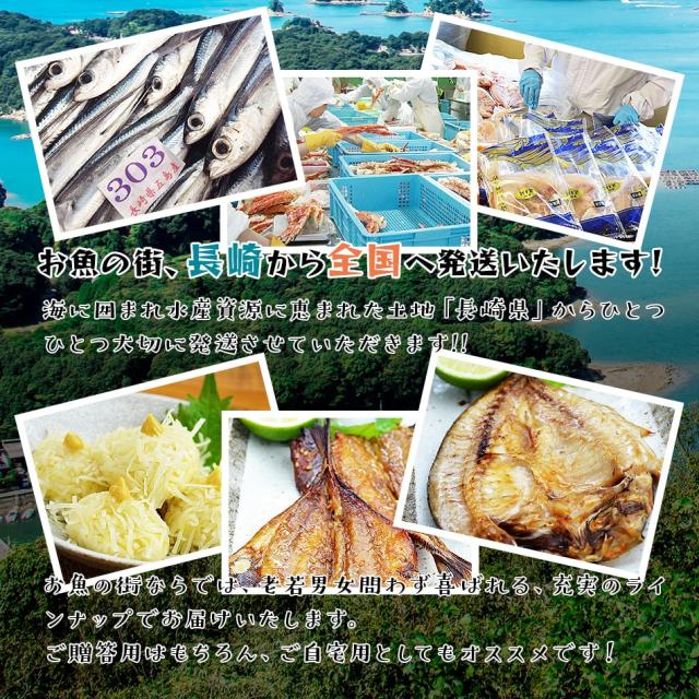 | 商品詳細 | 長崎の干物が美味しい秘密は、陸地の三方を海で囲まれた長崎県の立地にあります。世界最大級の海流である黒潮から分岐する対馬海流に乗り、多種多様な魚が四季を通して回遊しています。また、中国や台湾と面する東シナ海には、世界有数の大陸棚が広がり、魚の餌になるプランクトンも豊富です。つまり、好漁場を形成する環境が整っているのです。中でもアジ、サバ、タイと言った日本人に馴染み深い魚種の漁獲高は群を抜いていて、長崎県の水産資源が日本人の食卓を支えていると言っても過言ではありません。こういった背景から古くより干物加工業が盛んに行われており、生の魚介に負けず劣らず、より良い品質の干物が毎日市場に並んでいるのです。 |