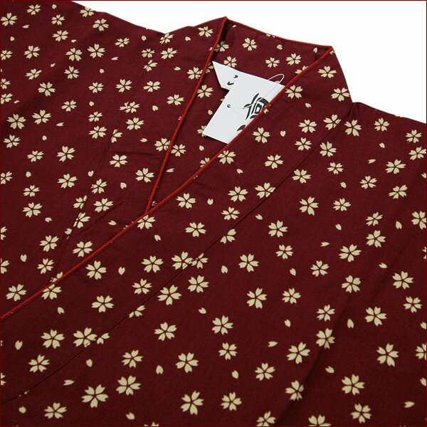 作務衣 女性 婦人 レディース 和柄 さむえ さむい 春 夏 秋 3シーズン対応 桜 さくら吹雪柄 エンジ 旅館 料理屋 蕎麦打ち 居酒屋 ユニフォーム