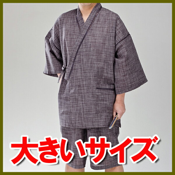 大きい サイズ の 甚平 しじらドビー抗菌消臭加工スマートフォン対応内ポケット付き・衿・袖付け・ポケットレース使い メンズ