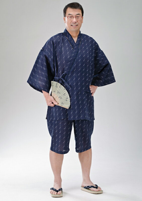 大きい サイズ の 甚平 しじらドビー抗菌消臭加工スマートフォン対応内ポケット付き衿・袖付け・ポケットレース使い/濃紺 No72メンズ