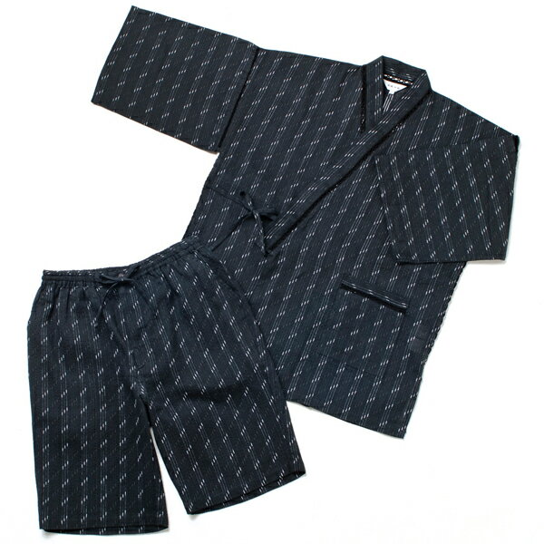 大きい サイズ の 甚平 しじらドビー抗菌消臭加工 3L・4L スマートフォン対応内ポケット付き衿 袖付け ポケットレース使い/漆黒No73