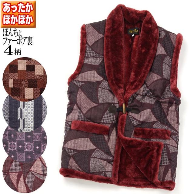 ぽんちょ 袖なし レディース 婦人 女性用 はんてん 半天 ちゃんちゃんこ でんち 部屋着 どてら へちま衿 和柄 和装 あったか 中綿 綿入れ