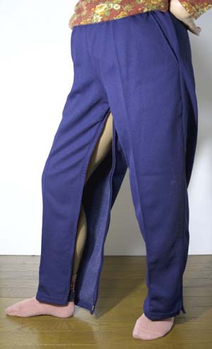 パンツの内側がファスナーにより全開するので。