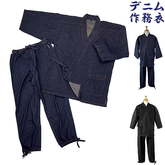 作務衣 デニム メンズ さむえ オールシーズンタイプの筒袖 デニムの 作 務 衣 を一年中着たいって声にお応えして 8オンスデニムの作務衣