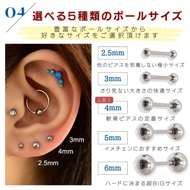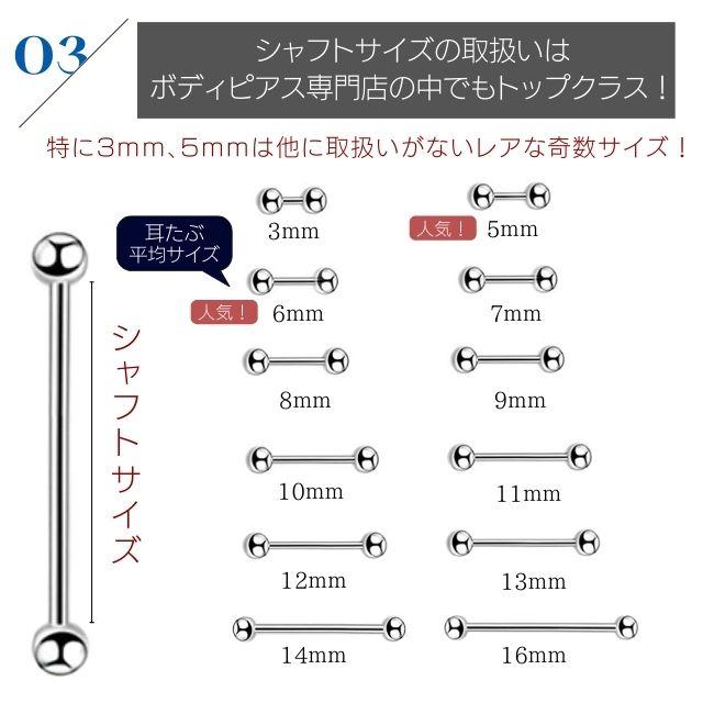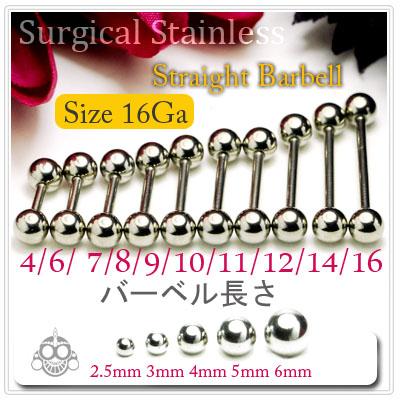 ボディピアス 16G レアサイズ 軟骨ピアス ストレートバーベル ピアス ステンレス つけっぱなし 金属アレルギー 対応 耳 トラガス ヘリックス ボディピアス専門店