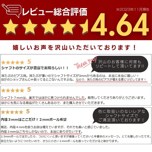 - 14gと併せて購入しました! 9ミリは有難いですね。 届いてすぐに着けました。軟骨にいい感じです。