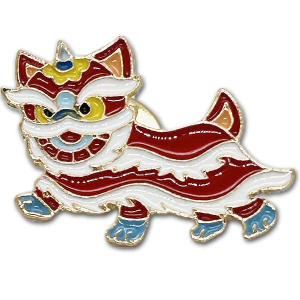 ピンバッジ獅子舞 【ネコポス便可】 | ライオンダンス,春節,祭り,中国,中華街,レトロ,雑貨,ノスタルジック,昭和,お土産,ギフト,プレゼント,バッチ,バッヂ