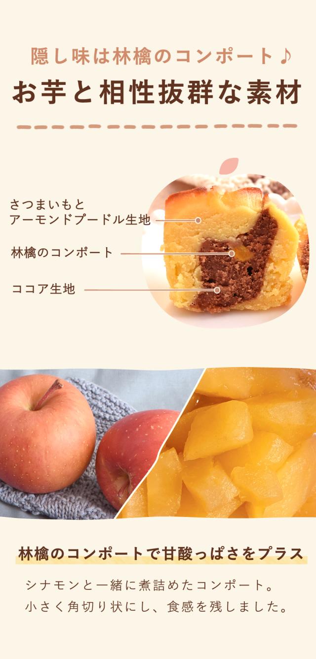 - バレンタイン用に注文・購入しました。迅速で丁寧なご対応本当にありがとうございます?国産さつまいも生地と林檎のコンポートにココアとアーモンドがこんなに合うなんて??またイベント時にお願いします?