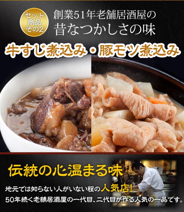 - どれも美味しかったです。 もつ煮込みと牛すじ煮込みを2パックずつ注文しました。 もう一品に丁度よいと思います。