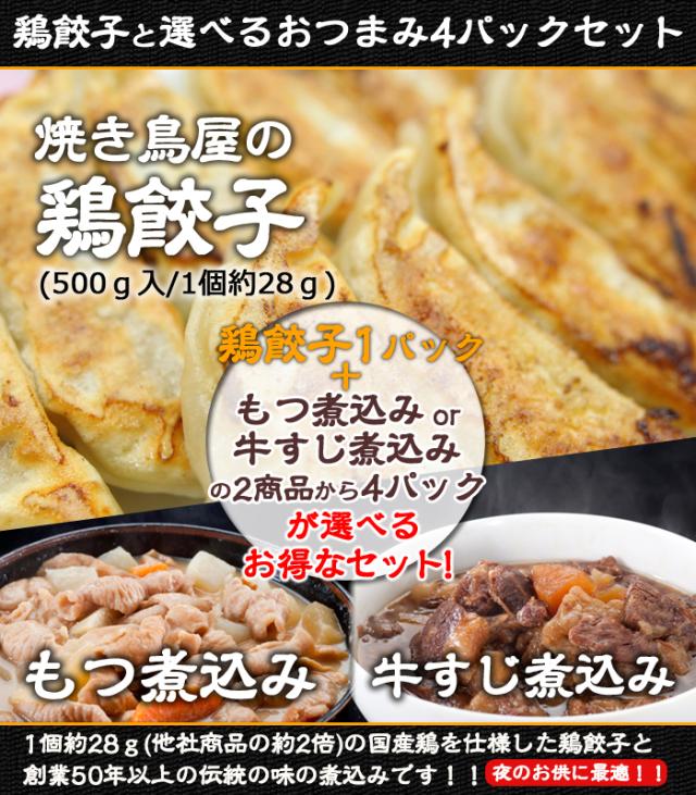 【送料無料】焼き鳥屋の鶏餃子(500g 一個約28g)と選べるおつまみ4パックセット ビール 酒のつまみに 訳あり お惣菜 お弁当 業務用 お試し メガ盛り お取り寄せグルメ