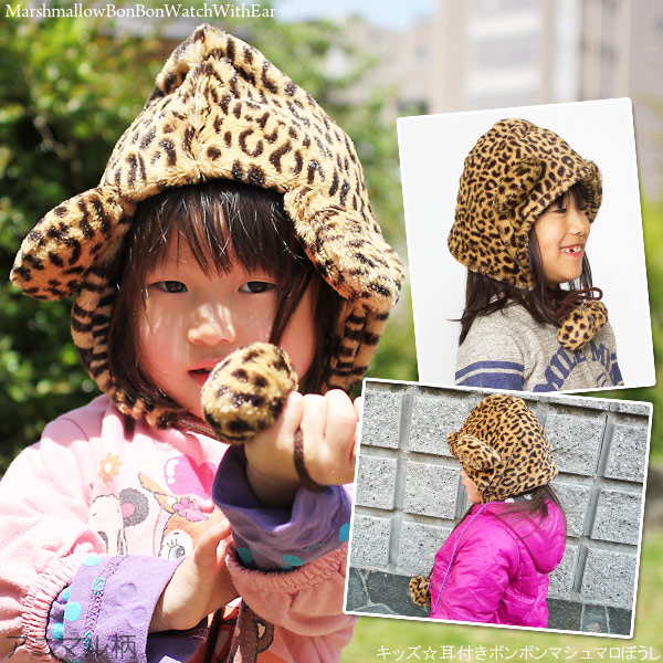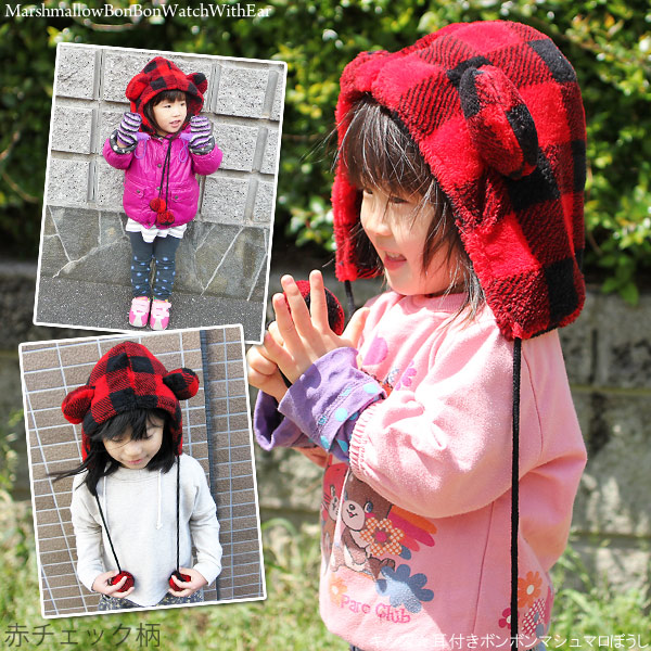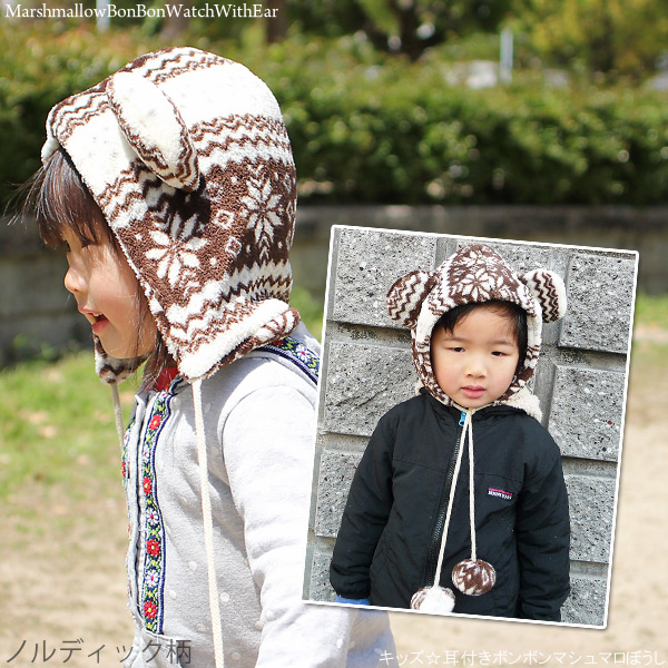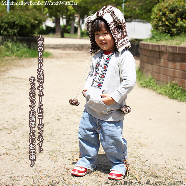 ニット帽 子供用 [メール便可] 帽子 秋冬 男の子 女の子 キャップ 頭巾 / キッズ 耳付きボンボンマシュマロぼうし