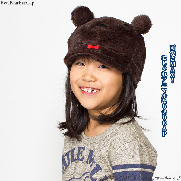 帽子 キッズ 子供用 CAP クマ 男の子 女の子 可愛い 動物 アニマル 秋 冬 モコモコ / キッズ リアルくまさんファーキャップ