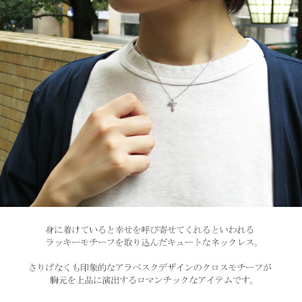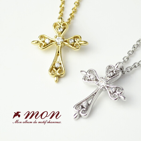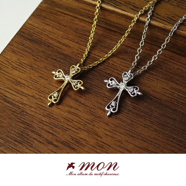 【mon】 選べる2カラー アラベスク クロス シルバーネックレス 送料無料