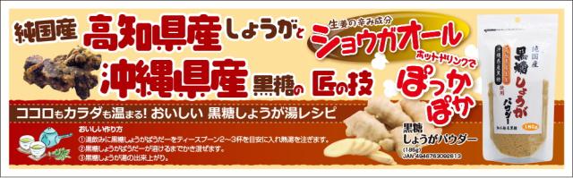 「高知産しょうが」と「沖縄産黒糖」を使用した純国産しょうがパウダー。【内容量】185g【原材料】粗糖(さとうきび、沖縄県産)、黒糖(さとうきび、沖縄県産)、生姜粉末(生姜、高知県産)【お召し上がり方】本品大さじ1杯(約10g)を140ccの熱湯に溶かして、よくかき混ぜてお飲みください。【使用上の注意】●開封後はチャックを締め、お早めに召し上がりください。●原材料の性質により固まりができる場合がございますが、品質には問題ございません。●熱湯を使用する際は火傷に注意してください。【原産国】日本【区分】食品