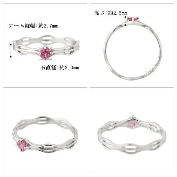 天然 ピンクトルマリン プラチナコーティング シルバーリング 7〜15号 シルバー925 透かし アラベスク 唐草 10月 誕生石 天然石 リング 指輪 ピンク