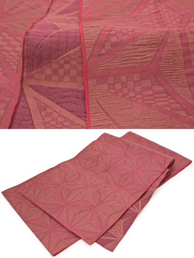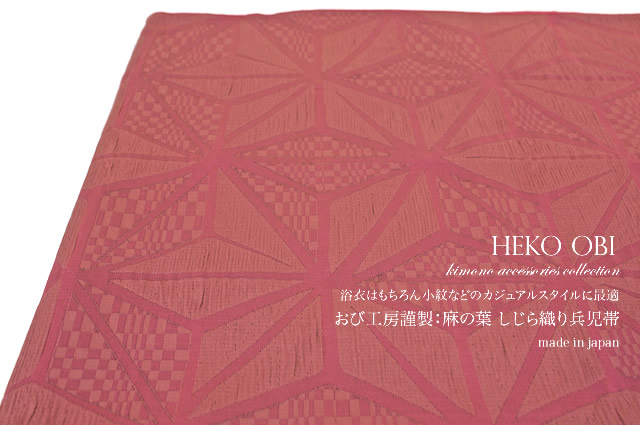 兵児帯 浴衣用 小紋用 夏着物用 赤 しじら織り 麻の葉文 浴衣帯