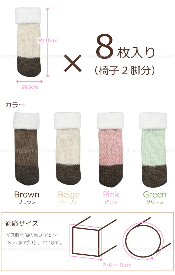 [素材・材質] アクリル、ポリエステル、ゴム [セット内容] 8枚入り(椅子2脚分) [適応範囲] 椅子脚の周囲で約6-18cm