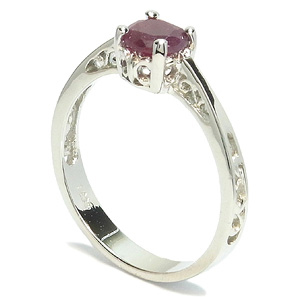 綺麗な赤紫色に輝く約5mm程のルビーが留められた、プラチナコーティングのシルバーリングです。