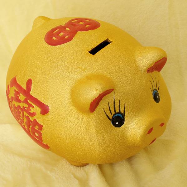 本商品の金豚は飾っているだけで運が寄ってきそうな可愛らしさで、ついつい背中のスリットにお金を入れてしまいたくなり、どんどんお金が貯まります。そのつぶらな瞳は癒し効果も抜群です。おなかに書かれている変な漢字は【招財進寶】(しょうざいしんぽう)という組み文字で「財を招いて宝に進む」と言う意味があります。中華料理店などの店舗装飾や最近ではドラマやバラエティーなどの小道具としても大変人気が有ります。