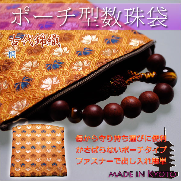 ポーチ型高級数珠袋【古代錦織:桐a7】京都産 数珠・数珠袋・数珠入れ ネコポス無料