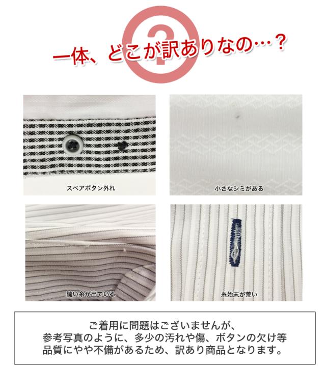型落ち品、撮影用商品、小さなシミやキズなどで通常商品として販売できなかったB品ワイシャツを安価でご提供!