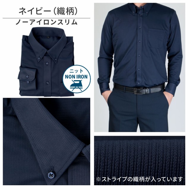 ワイシャツ 長袖 メンズ ノーアイロン 黒 ネイビー ニット シャツ スリム 2枚は2通 メール便で送料無料 y9-7-9-1 形態安定 スリム ボタンダウン Yシャツ 介護 倉庫 作業 安い 発送 ドレスシャツ カッターシャツ ビジネスシャツ 標準体 クールビズ