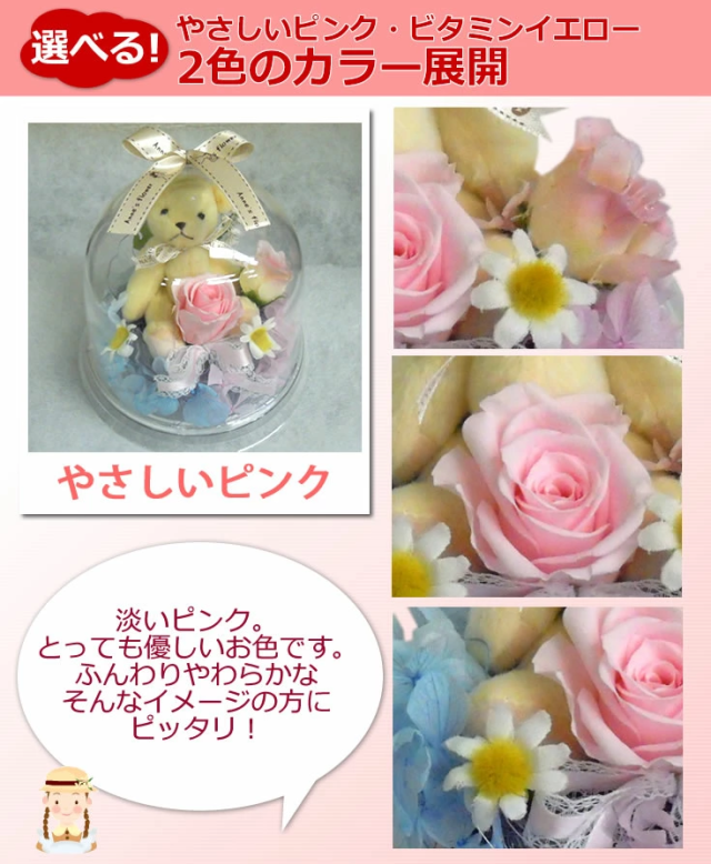 ふんわり柔らかなピンクと、元気いっぱいのイエローの2色からお選びください。