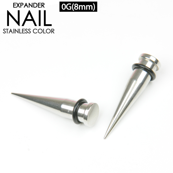 【メール便対応】拡張器 エキスパンダー ネイル 0ゲージ(8ミリ) サージカルステンレス316L ホールアップ ニードル 釘のような形状 ボディピアス ボディーピアス 0G(8mm)┃